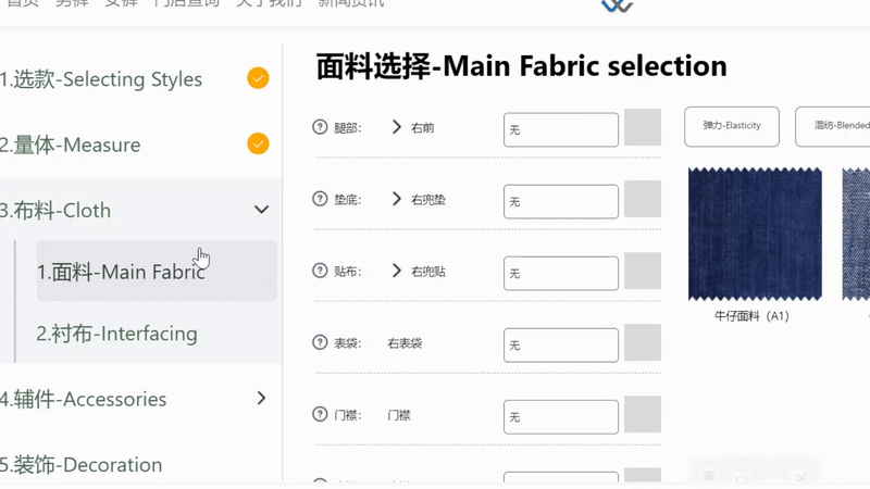 至少5个可控量体数据自定义:确保牛仔裤贴合身材曲线,成本符合版型的情况下,解决传统牛仔裤不合身的问题。